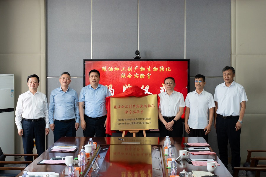 8月26日,國(guó)家糧食和物資儲(chǔ)備局科學(xué)研究院與山東泰山生力源集團(tuán)股份有限公司簽署糧油加工副產(chǎn)物生物轉(zhuǎn)化聯(lián)合實(shí)驗(yàn)室共建合作協(xié)議。國(guó)家局總工程師、院黨委書(shū)記滕增泰,泰安高新區(qū)黨工委書(shū)記、管委會(huì)主任宋鴻鵬,生力源公司總裁徐啟民出席簽約儀式,并共同為聯(lián)合實(shí)驗(yàn)室揭牌??茖W(xué)研究院副院長(zhǎng)邱平,生力源公司副總裁李軍訓(xùn)分別代表雙方單位簽約。院首席科學(xué)家李?lèi)?ài)科參加簽約儀式。