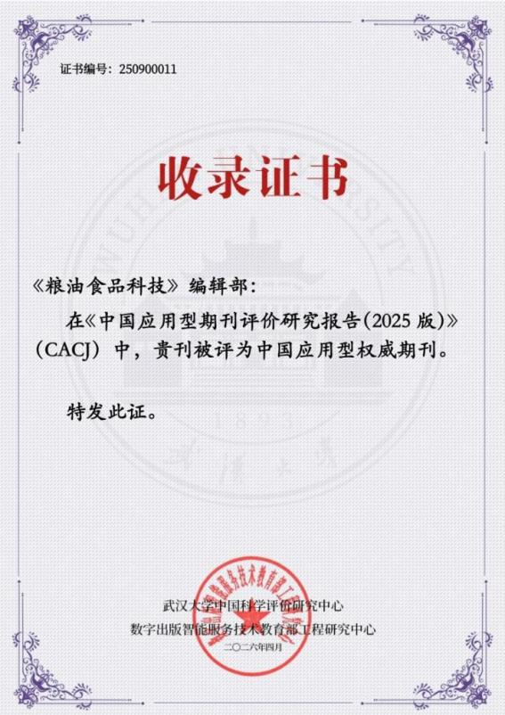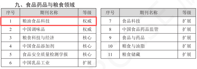 《糧油食品科技》入選CACJ中國應(yīng)用型權(quán)威期刊